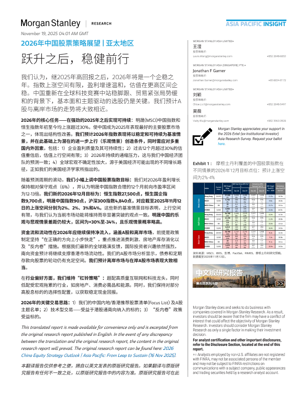 【Morgan Stanley】【202511】2026年中国股票策略展望|亚太地区 跃升之后,稳健前行-14页