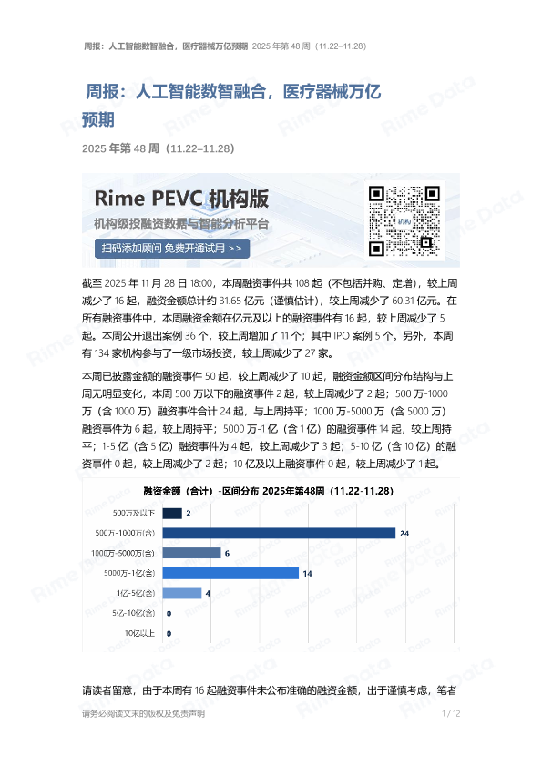 行业预测 人工智能 融资分析 医疗器械 创投报告