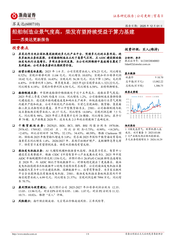 【浙商证券】【202512】船舶制造业景气度高,柴发有望持续受益于算力基建——苏美达更新报告-4页