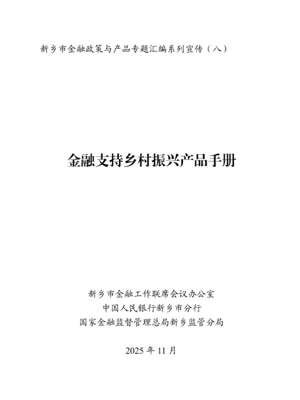 【新乡市金融工作联席会议办公室&中国人民银行新乡市分行&国家金融监督管理总局新乡监管分局】【202511】金融支持乡村振兴产品手册-108页