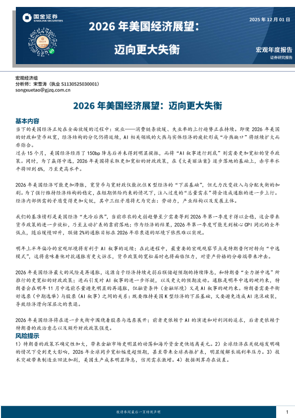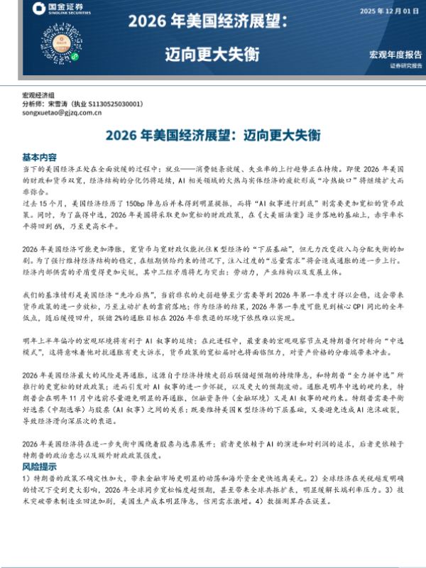 【国金证券】【202512】2026年美国经济展望_迈向更大失衡-26页