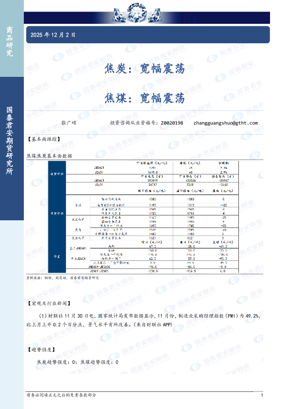 【国泰君安期货】【202512】焦炭:宽幅震荡, 焦煤:宽幅震荡-2页