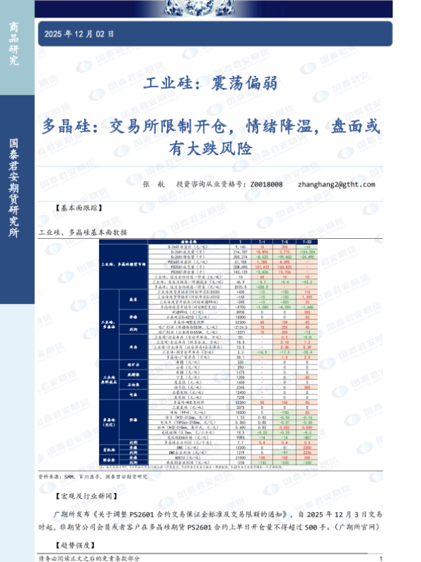 【国泰君安期货】【202512】工业硅:震荡偏弱,多晶硅:交易所限制开仓,情绪降温,盘面或有大跌风险-3页