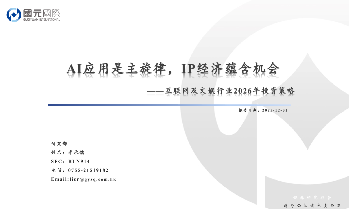 【国元国际】【202512】互联网及文娱行业2026年投资策略-32页