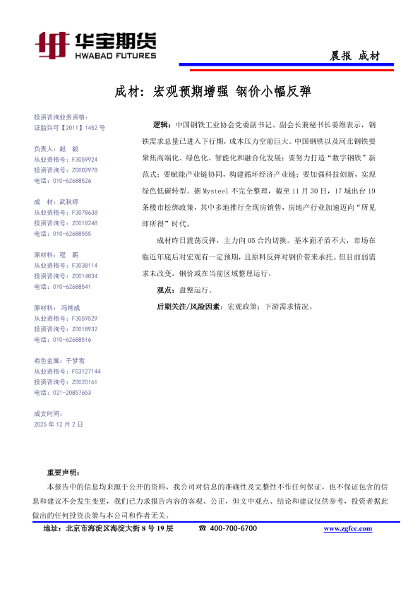 【华宝期货】【202512】成材_宏观预期增强_钢价小幅反弹-1页