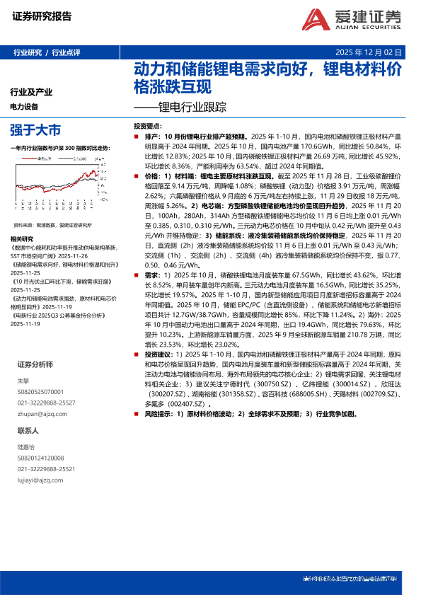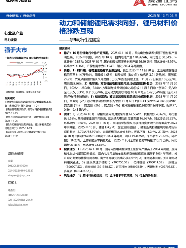 【爱建证券】【202511】动力和储能锂电需求向好,锂电材料价格涨跌互现-8页