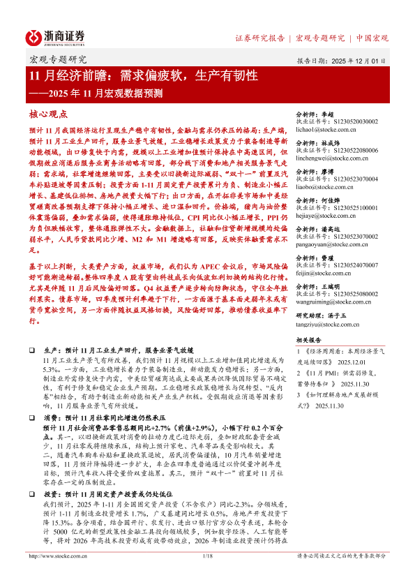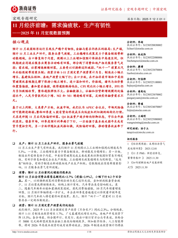 【浙商证券】【202512】11月经济前瞻:需求偏疲软,生产有韧性-18页