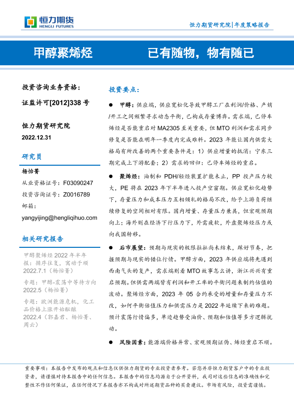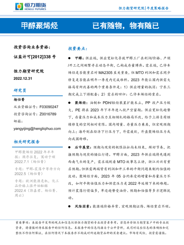 【恒力期货】【20221231】甲醇聚烯烃年度策略报告:已有随物,物有随已-43页