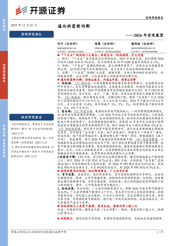 【开源证券】【202512】通向供需新均衡——2026年宏观展望-37页
