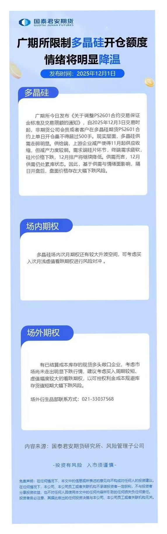 【国泰君安期货】【202512】广期所限制多晶硅开仓额度情绪将明显降温-1页