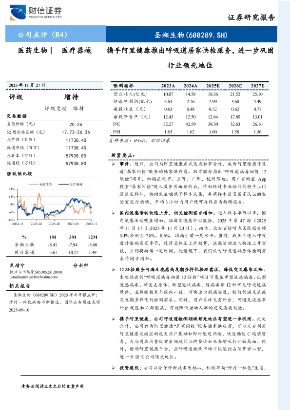 【财信证券】【202511】公司点评(R4)-退市 、警示 、美股 、港股 、三板 、北交所 、科创 圣湘生物(688289.SH)-4页