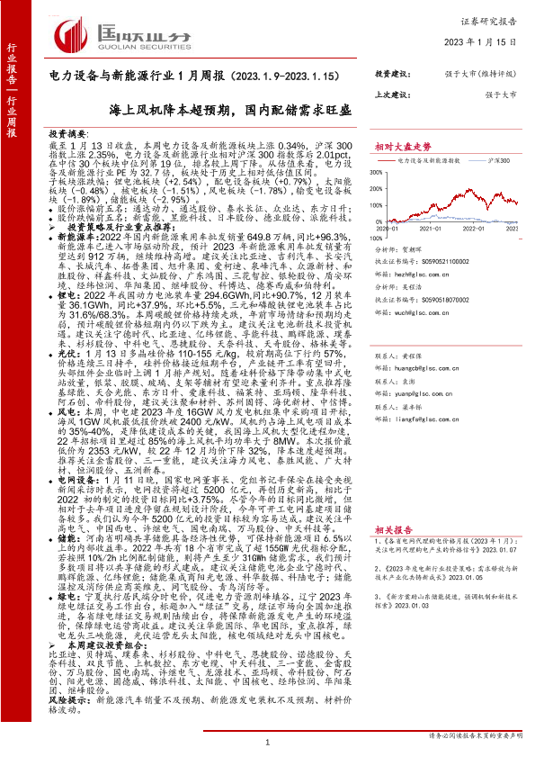 【国联证券】【20230115】电力设备与新能源行业1月周报:海上风机降本超预期,国内配储需求旺盛-18页