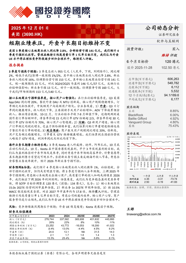 【国投证券(香港)有限公司】【202512】短期业绩承压,外卖中长期目标维持不变-5页