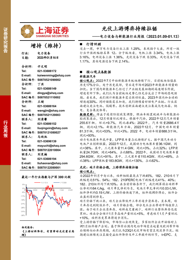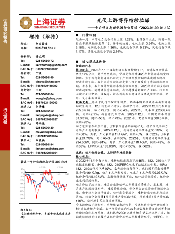 【上海证券】【20230115】电力设备与新能源行业周报:光伏上游博弈持续拉锯-26页