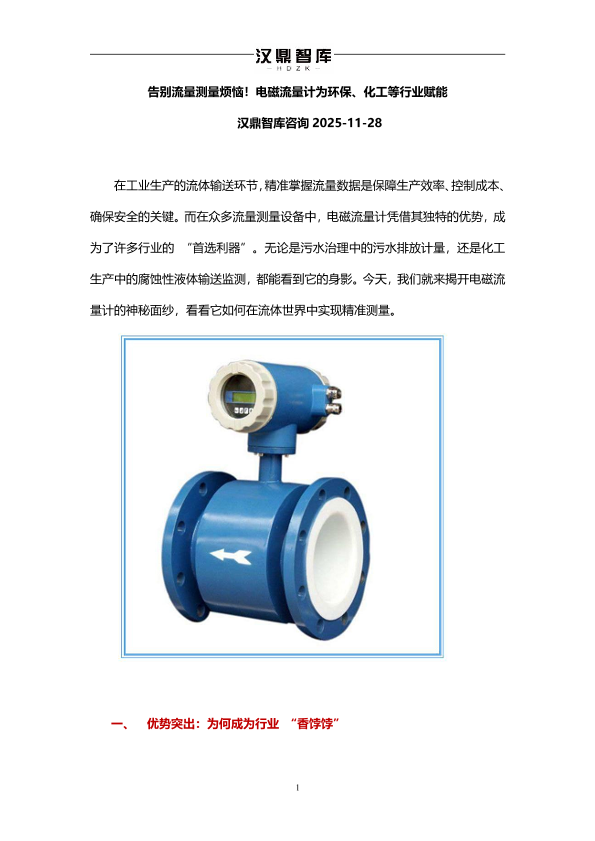 【汉鼎智库咨询】【202511】告别流量测量烦恼!电磁流量计为环保、化工等行业赋能-5页
