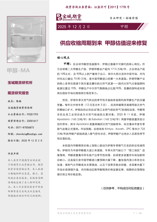 【宝城期货研究所】【202512】甲醇期货研究报告 | 专题报告-13页