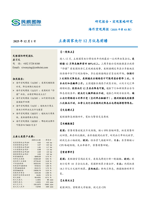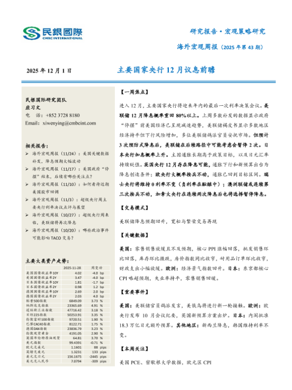 【民银国际研究团队】【202511】海外宏观周报(2025年第43期):主要国家央行12月议息前瞻-17页