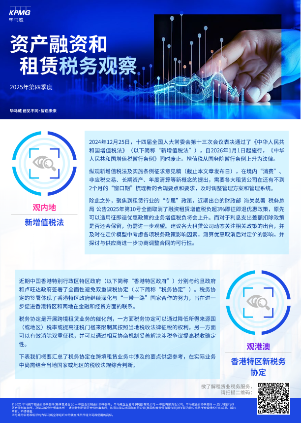 【毕马威华振会计师事务所 ( 特殊普通合伙 )&毕马威企业咨询 ( 中国 ) 有限公司&毕马威会计师事务所—澳门特别行政区合伙制事务所&毕马威会计师事务所—香港特别行政区合伙制事务所】【202511】资产融资和租赁税务观察2025年第四季度-4页
