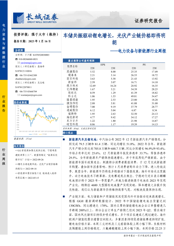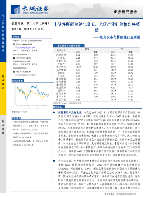 【长城证券】【20230116】电力设备与新能源行业周报:车储共振驱动锂电增长,光伏产业链价格即将明朗-15页