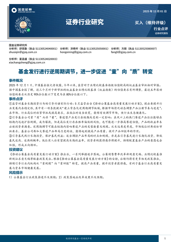 【国金证券】【202512】基金发行进行逆周期调节,进一步促进“量”向“质”车转变-3页
