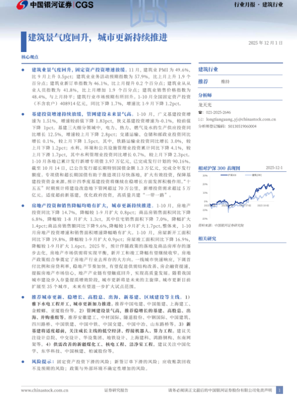 【银河证券】【202512】建筑行业行业月报:建筑景气度回升,城市更新持续推进-21页