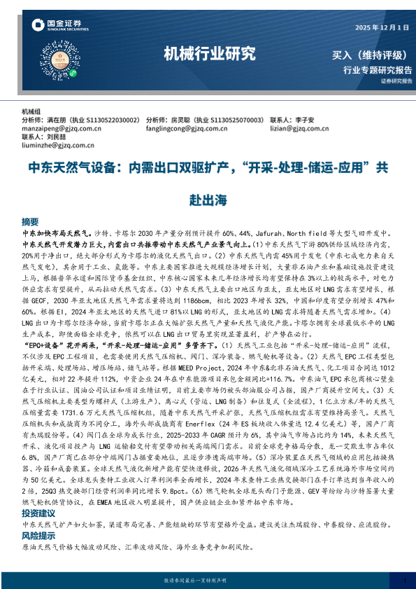 【国金证券】【202512】中东天然气设备:内需出口双驱扩产,“开采-处理-储运-应用”共赴出海-38页