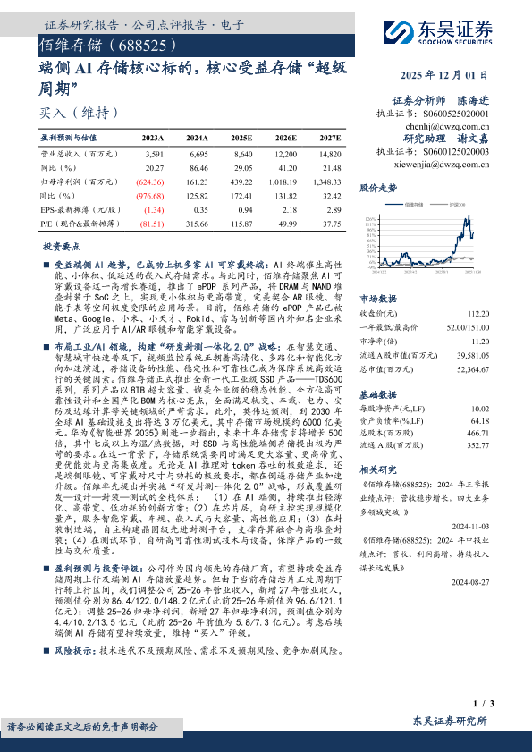 【东吴证券】【202512】端侧 AI存储核心标的,核心受益存储“超级 周期”-3页