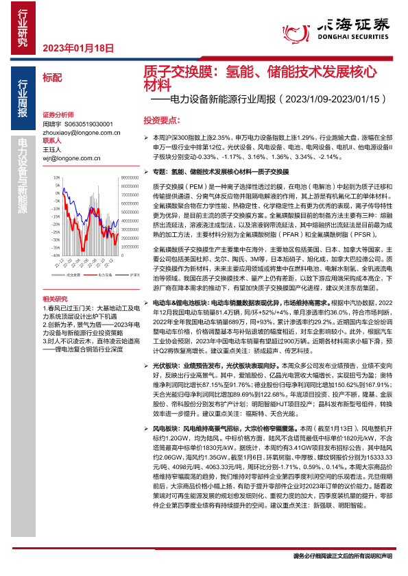 【东海证券】【20230118】电力设备新能源行业周报:质子交换膜,氢能、储能技术发展核心材料-37页