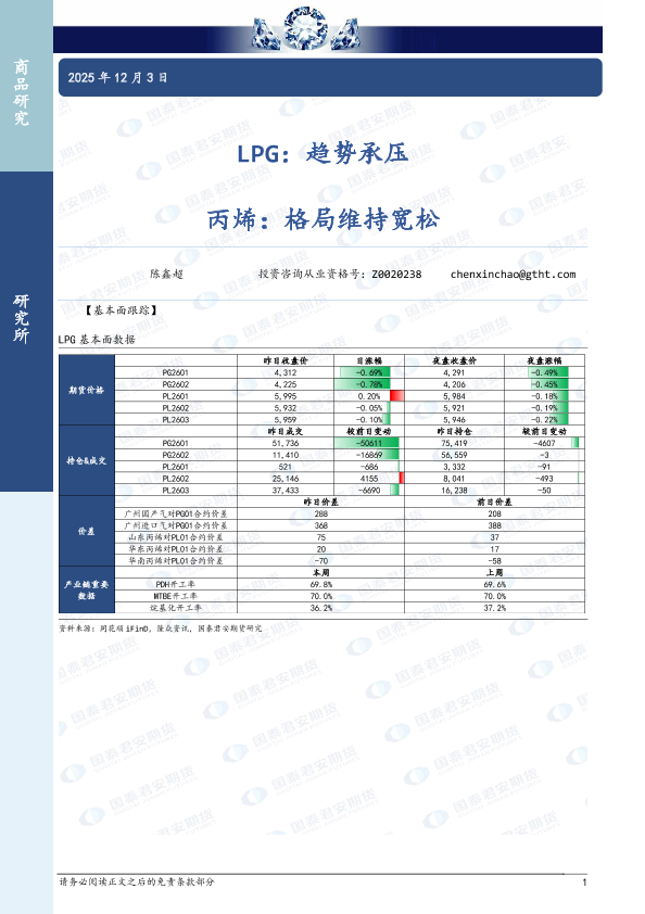 【国泰君安期货】【202512】LPG:趋势承压 丙烯:格局维持宽松-4页