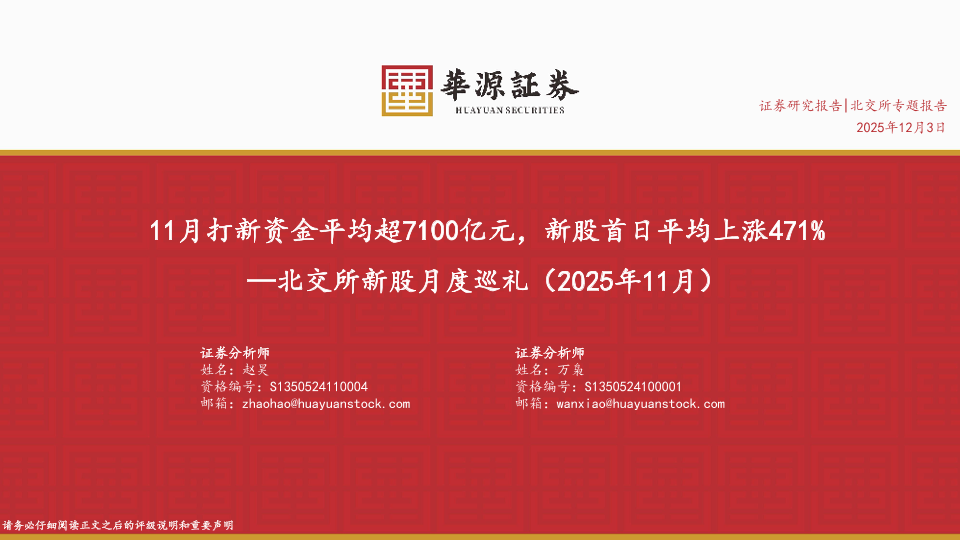 【华源证券】【202511】11月打新资金平均超7100亿元,新股首日平均上涨471%—北交所新股月度巡礼(2025年11月)-27页