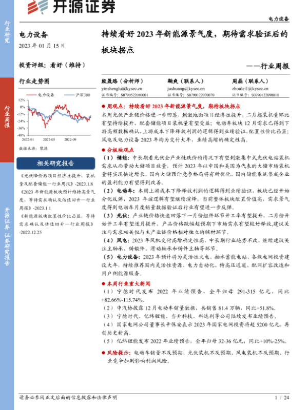 【开源证券】【20230115】电力设备行业周报:持续看好2023年新能源景气度,期待需求验证后的板块拐点-24页