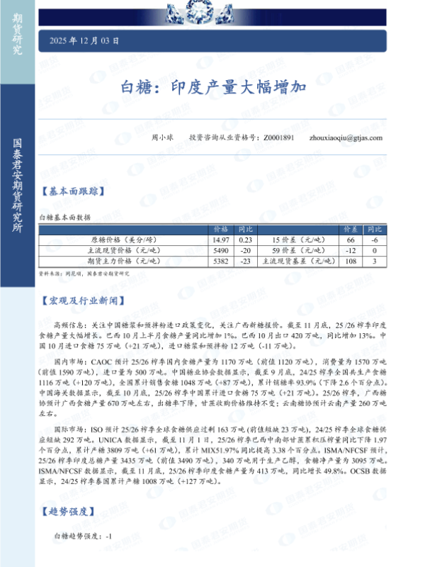 【国泰君安期货】【202512】白糖:印度产量大幅增加-3页