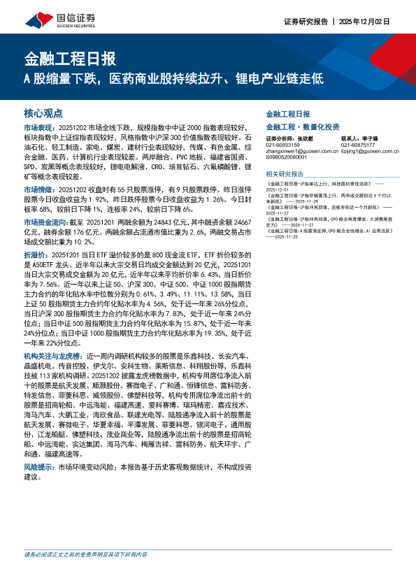 【国信证券】【202512】金融工程日报_A股缩量下跌_医药商业股持续拉升_锂电产业链走低-15页