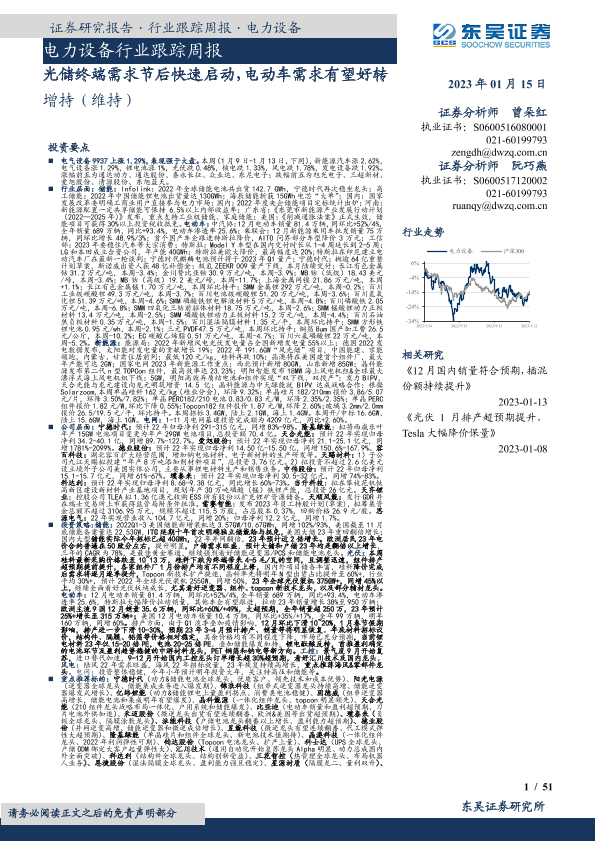 【东吴证券】【20230115】电力设备行业跟踪周报:光储终端需求节后快速启动,电动车需求有望好转-51页