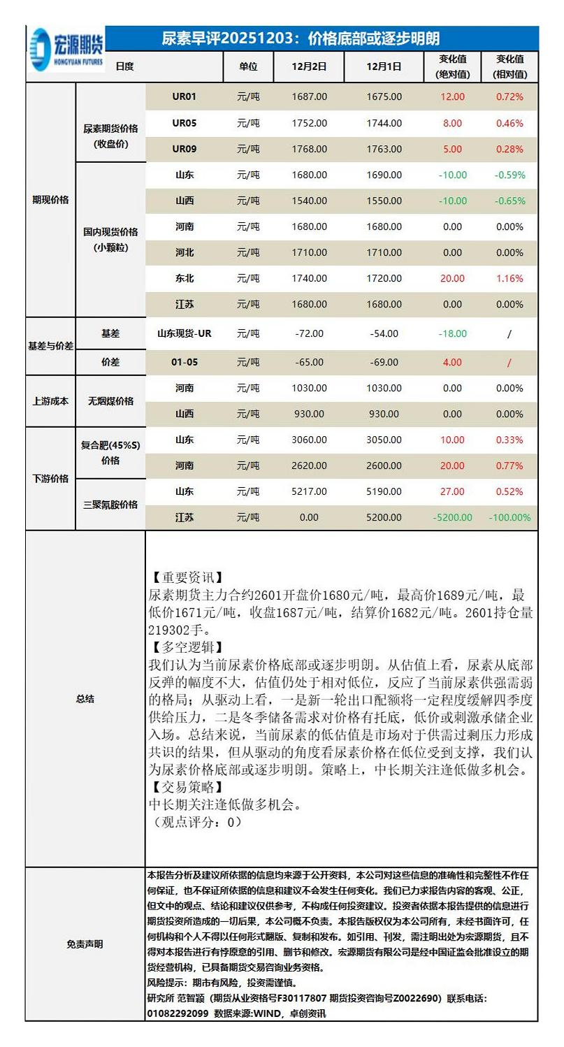 【宏源期货】【202512】宏源期货尿素早评20251203:价格底部或逐步明朗-1页