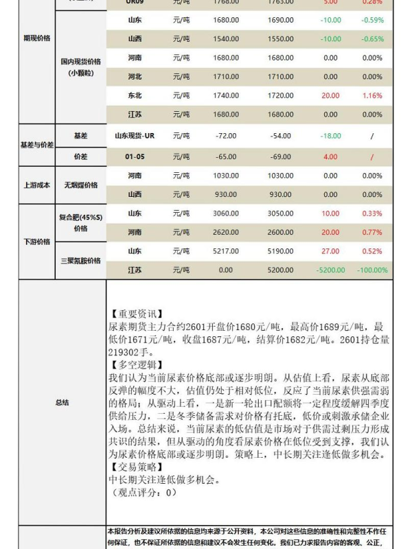 农业化工 价格走势 尿素 期货分析 供需分析