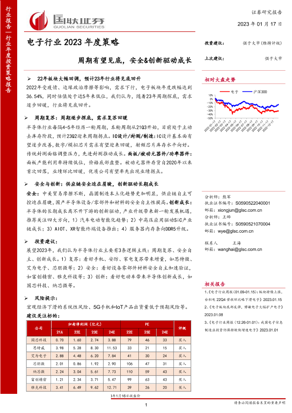 【国联证券】【20230117】电子行业2023年度策略:周期有望见底,安全&创新驱动成长-59页