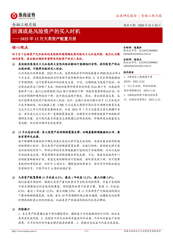 【浙商证券】【202512】回调或是风险资产的买入时机——2025年12月大类资产配置月报-11页