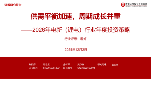 【浙商证券】【202512】2026年电新(锂电)行业年度投资策略——供需平衡加速,周期成长并重-15页