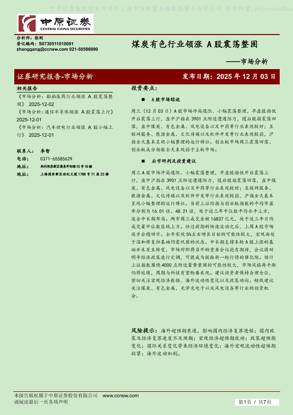 【中原证券】【202512】煤炭有色行业领涨 A股震荡整固-7页