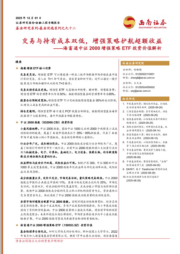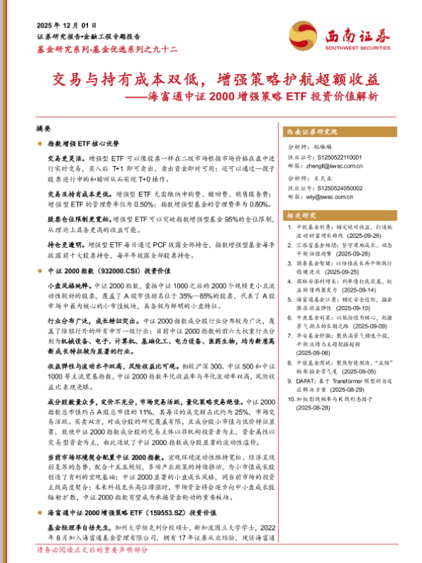 【西南证券】【2025】交易与持有成本双低,增强策略护航超额收益——海富通中证 2000增强策略 ETF投资价值解析-21页