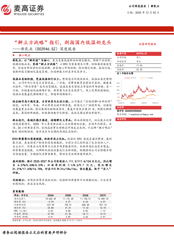 【麦高证券】【202512】“鲜立方战略”指引,剑指国内低温奶龙头——新乳业(002946.SZ)深度报告-26页
