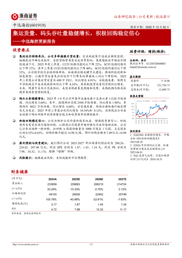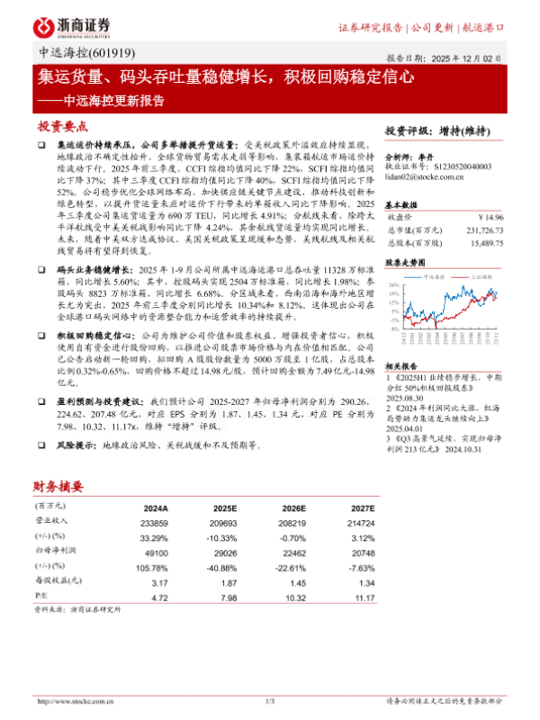 【浙商证券】【202512】集运货量、码头吞吐量稳健增长,积极回购稳定信心——中远海控更新报告-3页