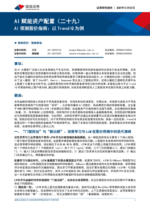 【国信证券】【202512】A I赋能资产配置(二十九) A I预测股价指南:以 Trend IQ为例-11页