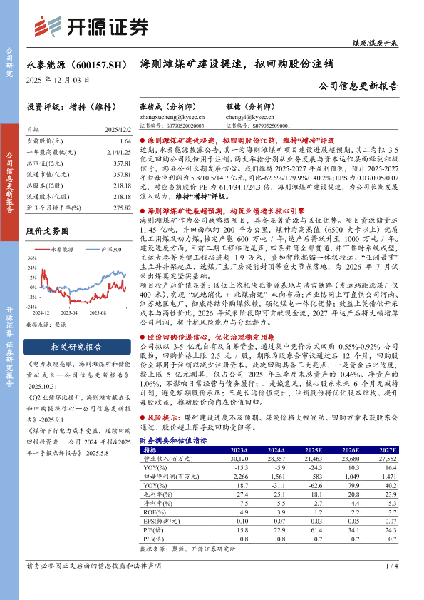 【开源证券】【202512】海则滩煤矿建设提速,拟回购股份注销-4页