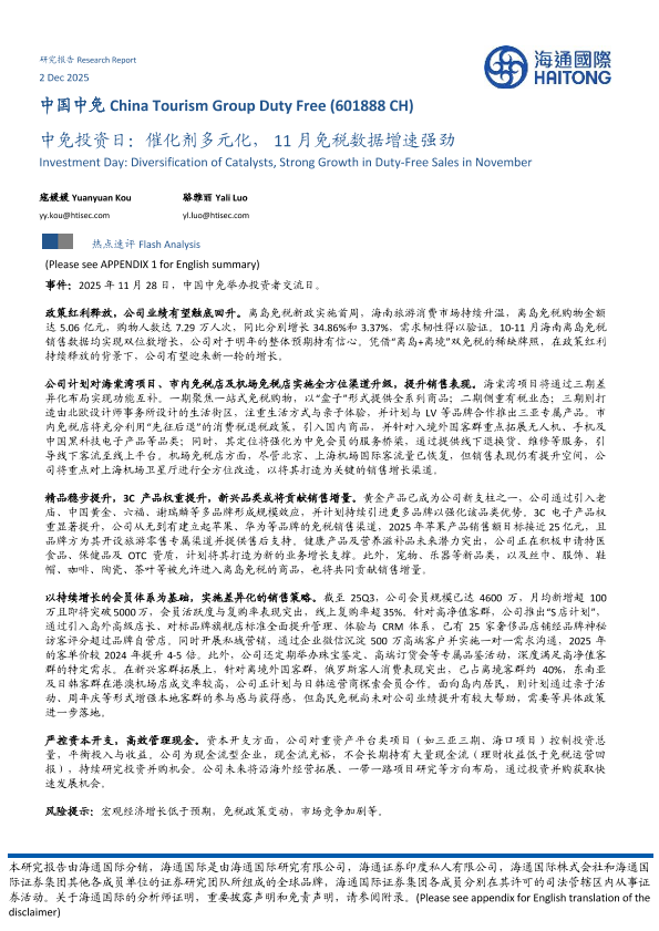 【海通国际】【202512】中免投资日:催化剂多元化,11月免税数据增速强劲-10页