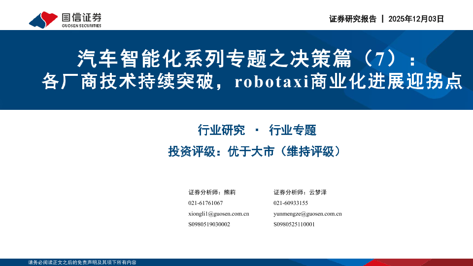 【国信证券】【202512】汽车智能化系列专题之决策篇(7):各厂商技术持续突破,robotaxi商业化进展迎拐点-45页