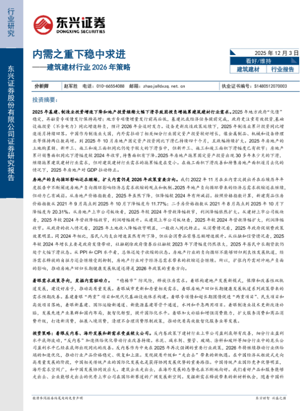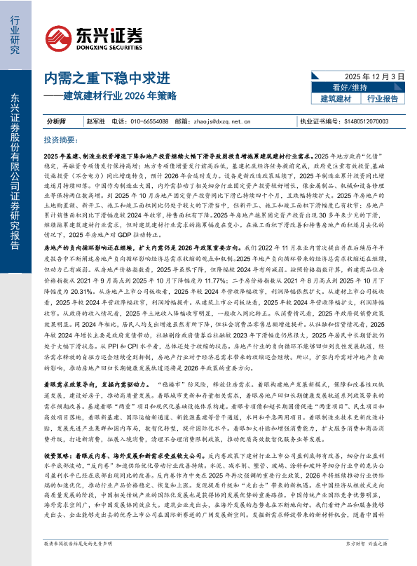 【东兴证券】【202512】建筑建材行业2026年策略:内需之重下稳中求进-31页