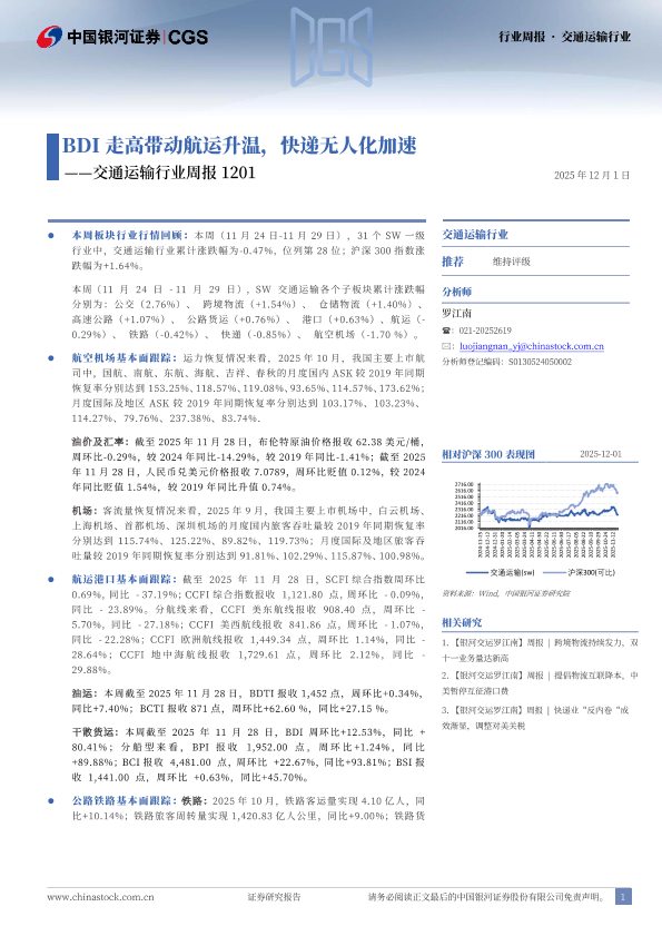 【银河证券】【202512】BDI走高带动航运升温,快递无人化加速-19页