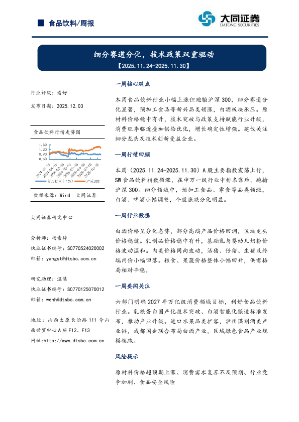 【大同证券研究中心】【202512】食品饮料/周报-12页